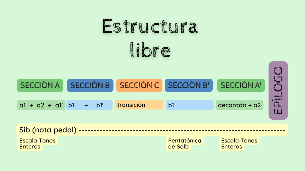 Al tratarse de una obra de estilo impresionista el análisis que os presento está centrado en otros elementos distintos al fundamental de la tonalidad como es la armonía. Ahora nos centraremos más en el resto de parámetros: melodía, rimo y texturas. A partir de ahí comentaré los detalles más relevantes.