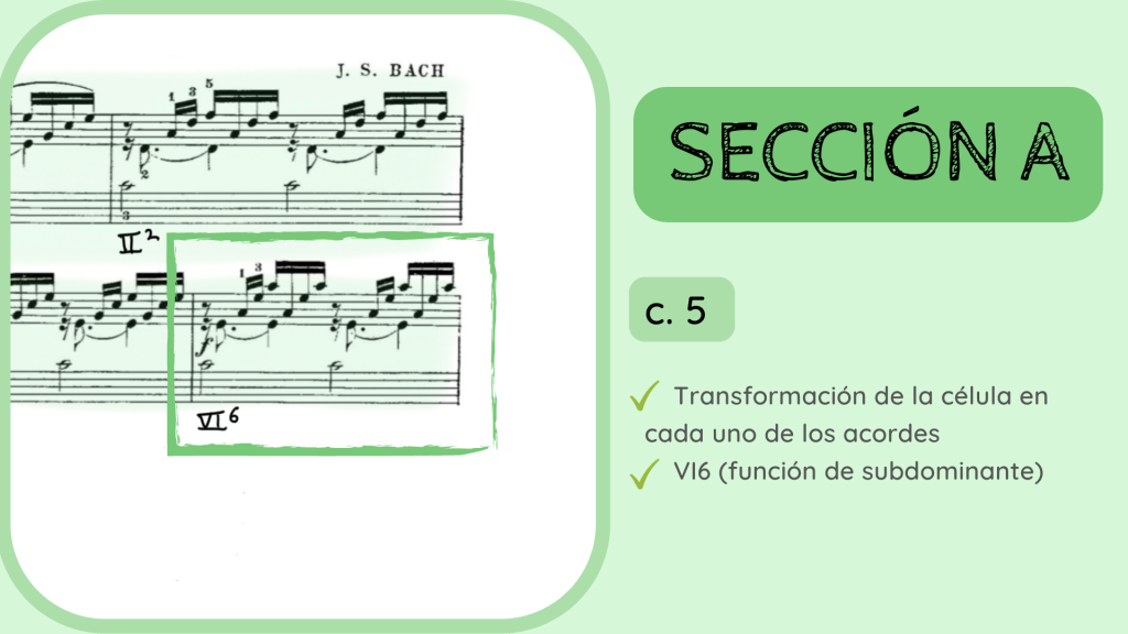 Vuelve a suceder lo de antes (y volverá a pasar en alguna otra ocasión), y es que el bajo se mantiene del acorde anterior y la armonía se va transforma. Es así como la Tónica se transforma en un VI con función de subdominante.