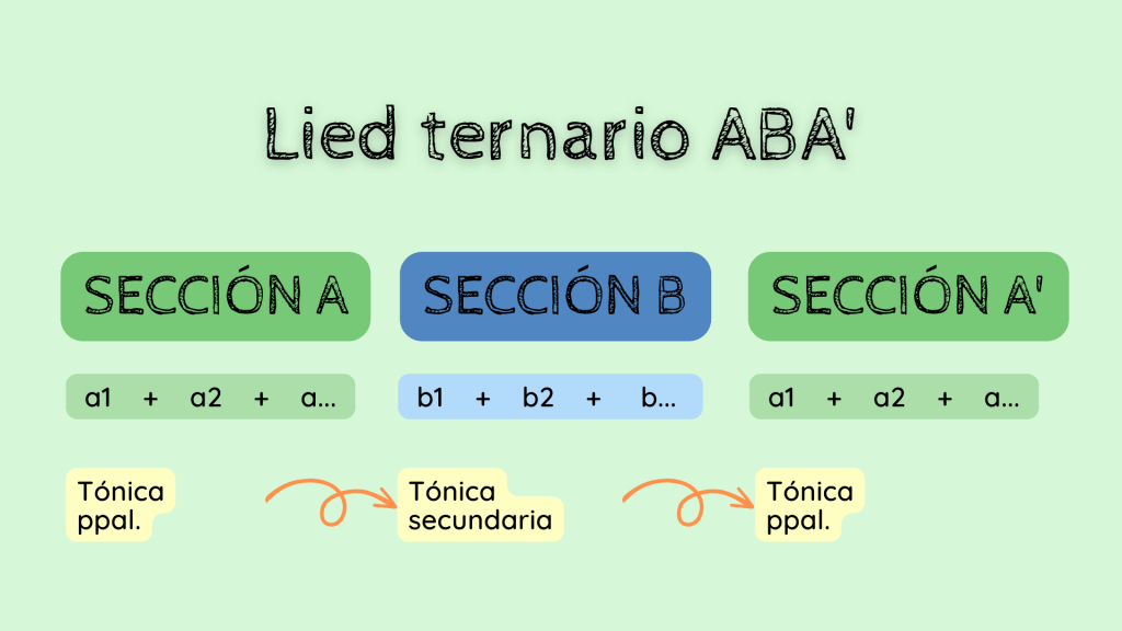 El Lied Ternario o forma ternaria es un modelo estructural que sigue el patrón de ABA’; una suerte de simplificación de la estructura general de la Forma Sonata. Es decir, se constituye por tres secciones ABA’ pero, en ellas, no existe una oposición de tonalidades como ocurre en la Exposición (A) y Reexposición (A’) de la Forma Sonata.
