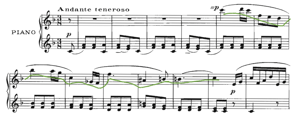 Una vez explicada la construcción y las distintas estructuras de la línea melódica y qué tipos de elementos la constituyen (motivo, semifrase, frase o periodo) nos adentramos en aquellos parámetros o conceptos que la refuerzan y ayudan a su articulación (además del ritmo). Para ello afrontaremos el análisis desde varios frentes: su perfil melódico, la articulación fraseológica y las indicaciones dinámicas. Todos contribuyen al objetivo del compositor de transmitir su discurso musical; lo apoyan, proyectan y refuerzan para una mayor claridad e inteligibilidad.