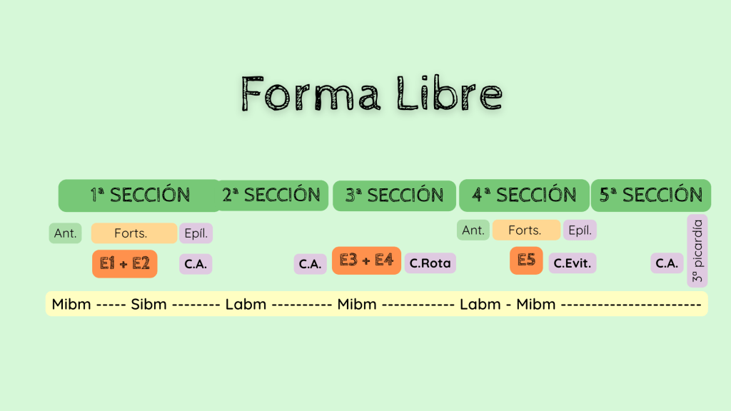 Para finalizar, como siempre, os dejo con el esquema formal de la obra. Como no podía ser de otra manera en un preludio de Bach, la estructura es libre y no responde a ningún esquema formal.