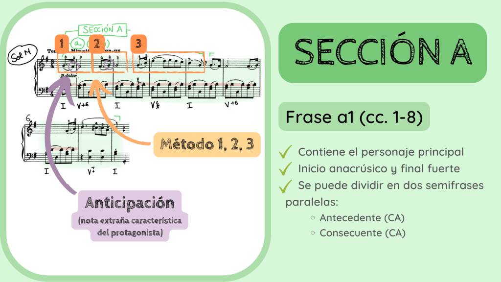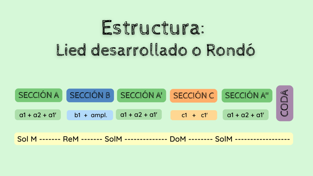 Y así, la tensión y el enlace melódico resuelven sobre la siguiente gran parte de la obra, la Sección A’. De la cual, por cierto, hay poco de lo que hablar porque se repite exactamente igual que la Sección A.