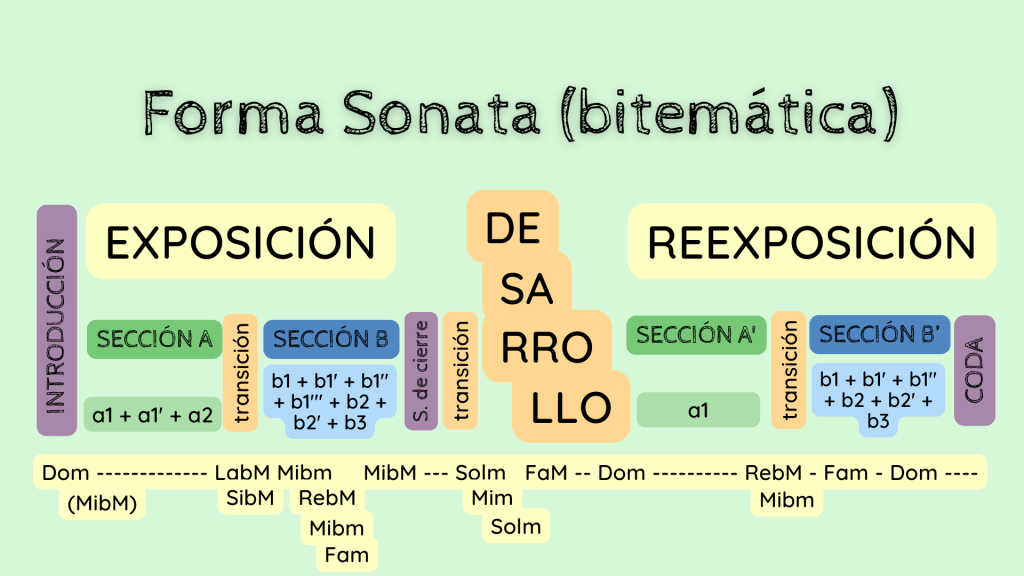 La sonata está en Do menor y su análisis estará basado en el fraseo y la forma de la obra pero la base del mismo será la armonía, como siempre hacemos cuando la obra es tonal. A partir de ahí iré comentando los detalles más relevantes.