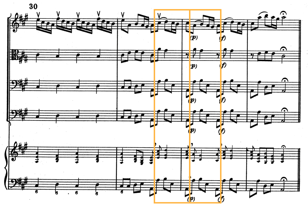 Cabe señalar que, en la música del Barroco y del Clasicismo fue común una forma de repetir un elemento o fragmento musical: primero forte y, seguidamente, en piano. A esta repetición contrastante a nivel dinámico la denominamos eco.