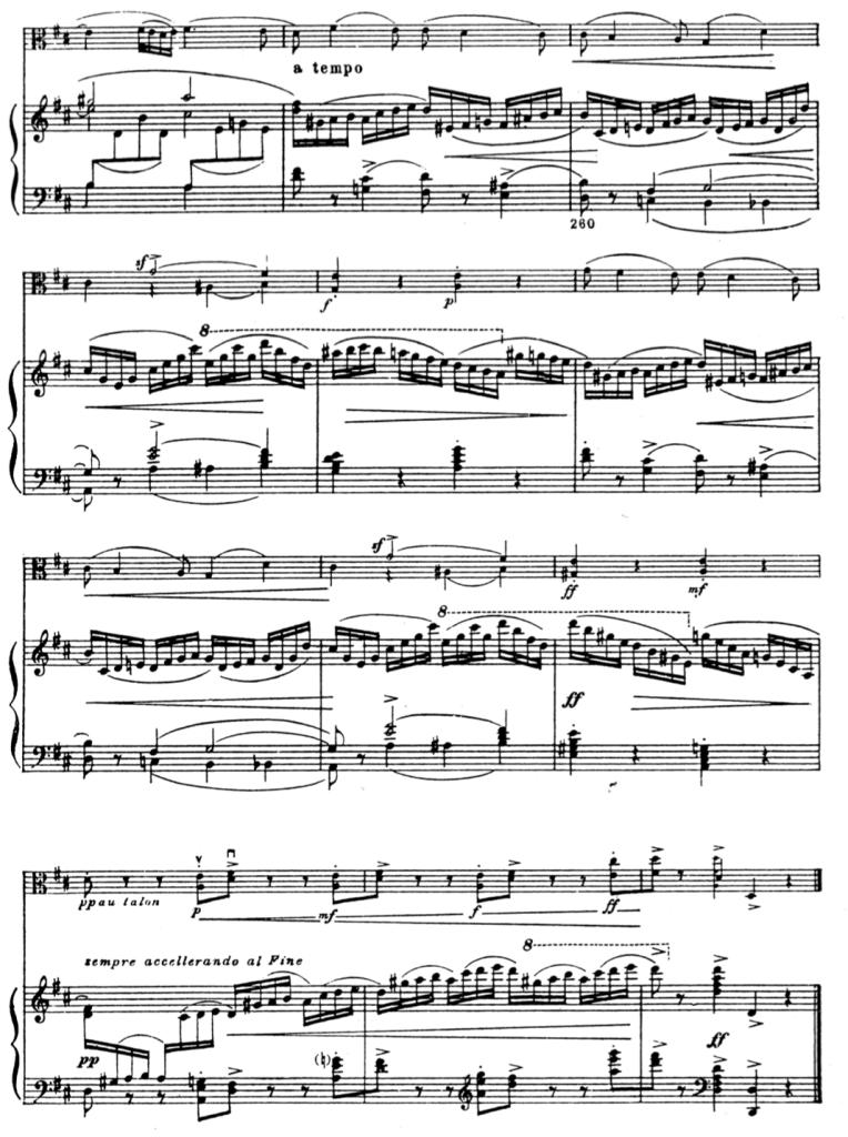 En el siguiente ejemplo de la Sonata para Tuba de Paul Hindemith también se da el proceso de apaciguamiento. Los acordes generados por las dos manos del pianista pasan de ser unidades de 3 notas, luego 2 y finalmente se desvanecen en 1.