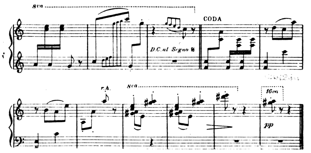 En el siguiente ejemplo de la compositora Florence Price, se puede apreciar como la música va desvaneciéndose progresivamente hacia el final; la relajación.